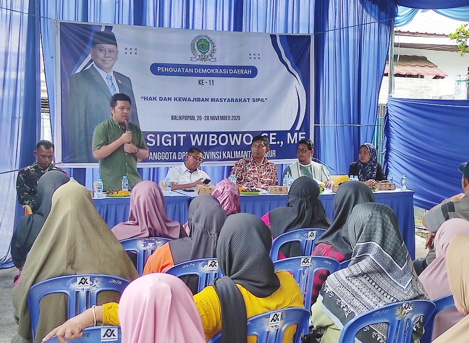 Porosnusantaranews,BALIKPAPAN – Upaya memperkuat pemahaman warga mengenai demokrasi kembali dilakukan Anggota DPRD Provinsi Kalimantan Timur, Sigit Wibowo. Melalui agenda Penguatan Demokrasi Daerah (PDD) ke-11 yang berlangsung di Jalan DI Panjaitan RT 28, Kelurahan Sumber Rejo, Balikpapan Tengah, pada Kamis (27/11/2025), masyarakat diajak meninjau ulang peran mereka dalam ruang publik demokratis.