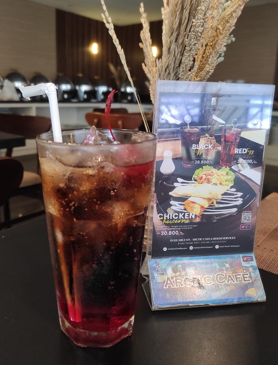 Food & Beverage Manager Hotel Pacific Balikpapan, Arie Agastya mengatakan, minuman Balck Fizz yakni minuman segera dari syrup Grenadine dan coca cola dan Red Fizz yakni minuman segera dari syrup Grenadine dan sprite. "Harga minuman black fizz dan red fizz dibandrol dengan harga Rp 28.500," katanya, kepada awak media, pada Jumat (31/5/2024).