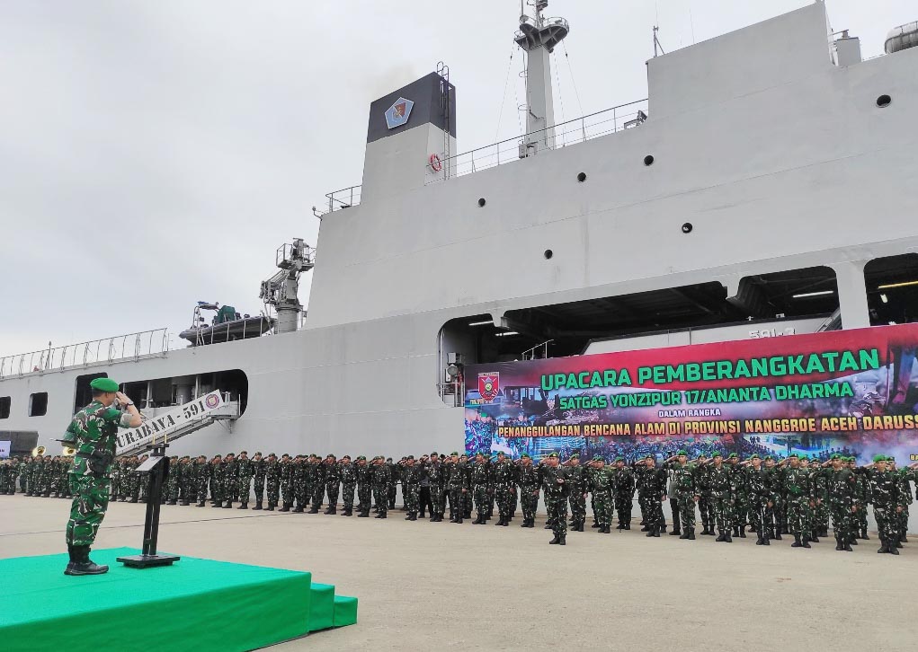 Pangdam turut menyampaikan apresiasi kepada Komandan KRI Surabaya-591 yang membawa pasukan menuju daerah operasi. Ia berharap perjalanan dan pelaksanaan tugas berjalan aman, lancar, serta sukses hingga seluruh personel kembali dengan selamat.