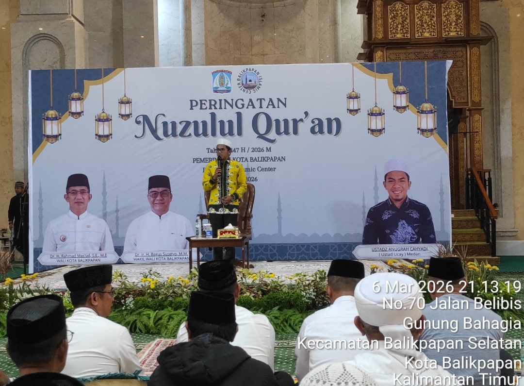 Porosnusantaranews,BALIKPAPAN – Pemerintah Kota (Pemkot) Balikpapan memanfaatkan momentum Safari Ramadan hari kelima dengan memperingati Nuzulul Qur’an. Kegiatan tersebut digelar pada Jumat malam (6/3/2026) di Masjid Madinatul Iman, Balikpapan Islamic Center.